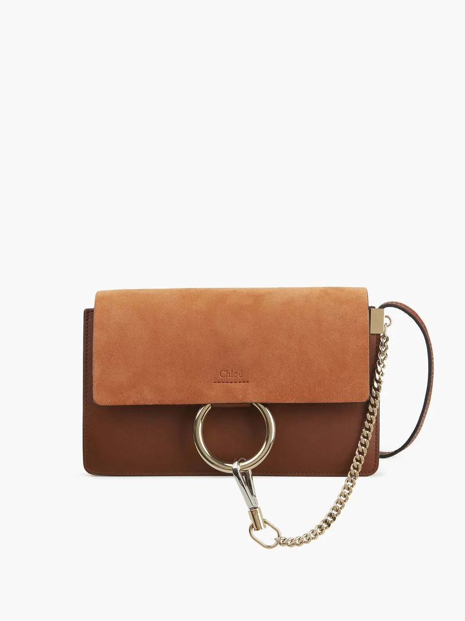 A perfect blend of suede and lambskin leather, the Chloe Faye is one of my favorite bags for its simplicity and contrast in material. This bag comes in many sizes ranging from wallet on chain to medium, and can be worn as a cross body or held as a clutch. It comes in a range of colors as well. The gold hardware against the leather creates the perfect bit of minimalist detail in the style that Chloe perfects.