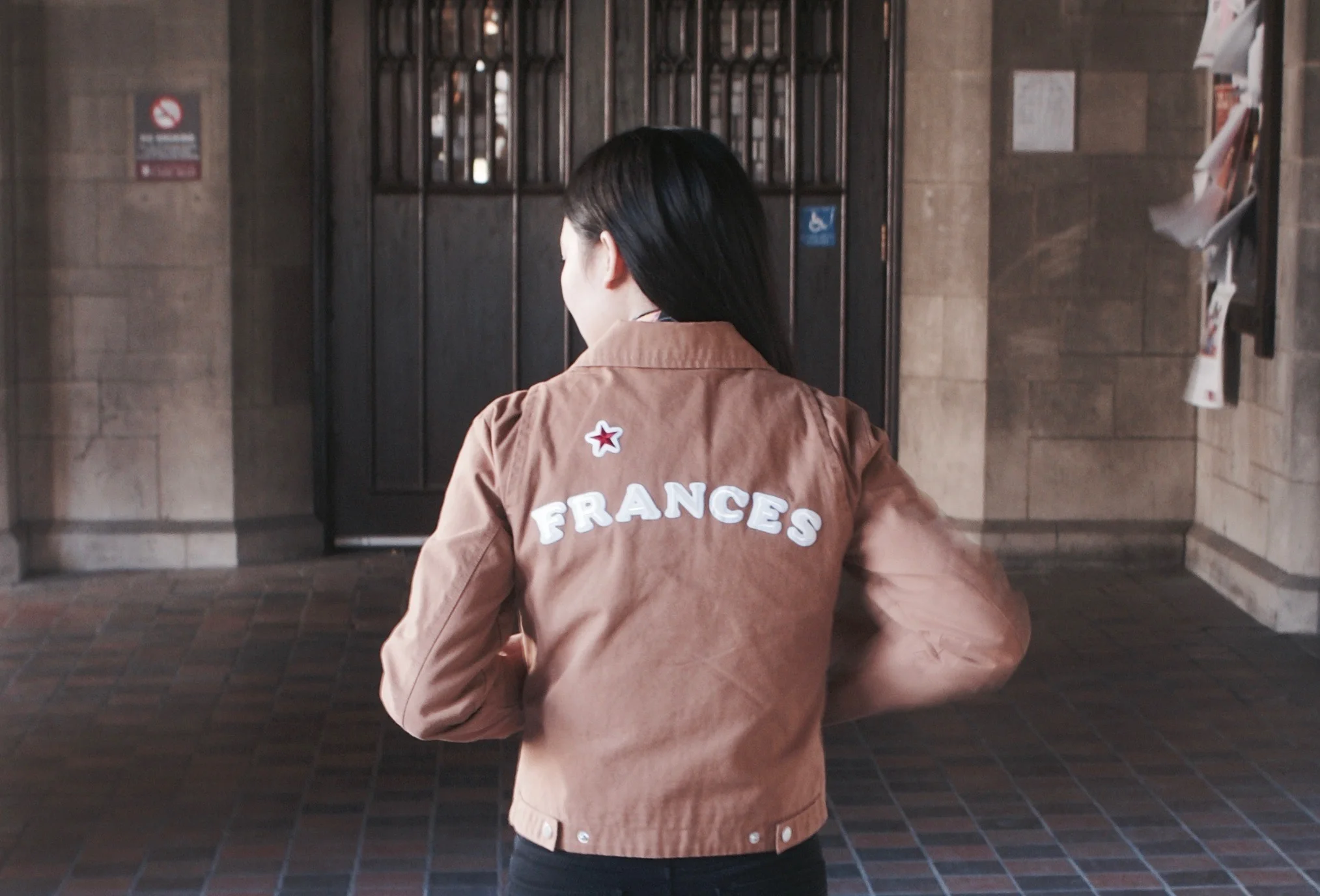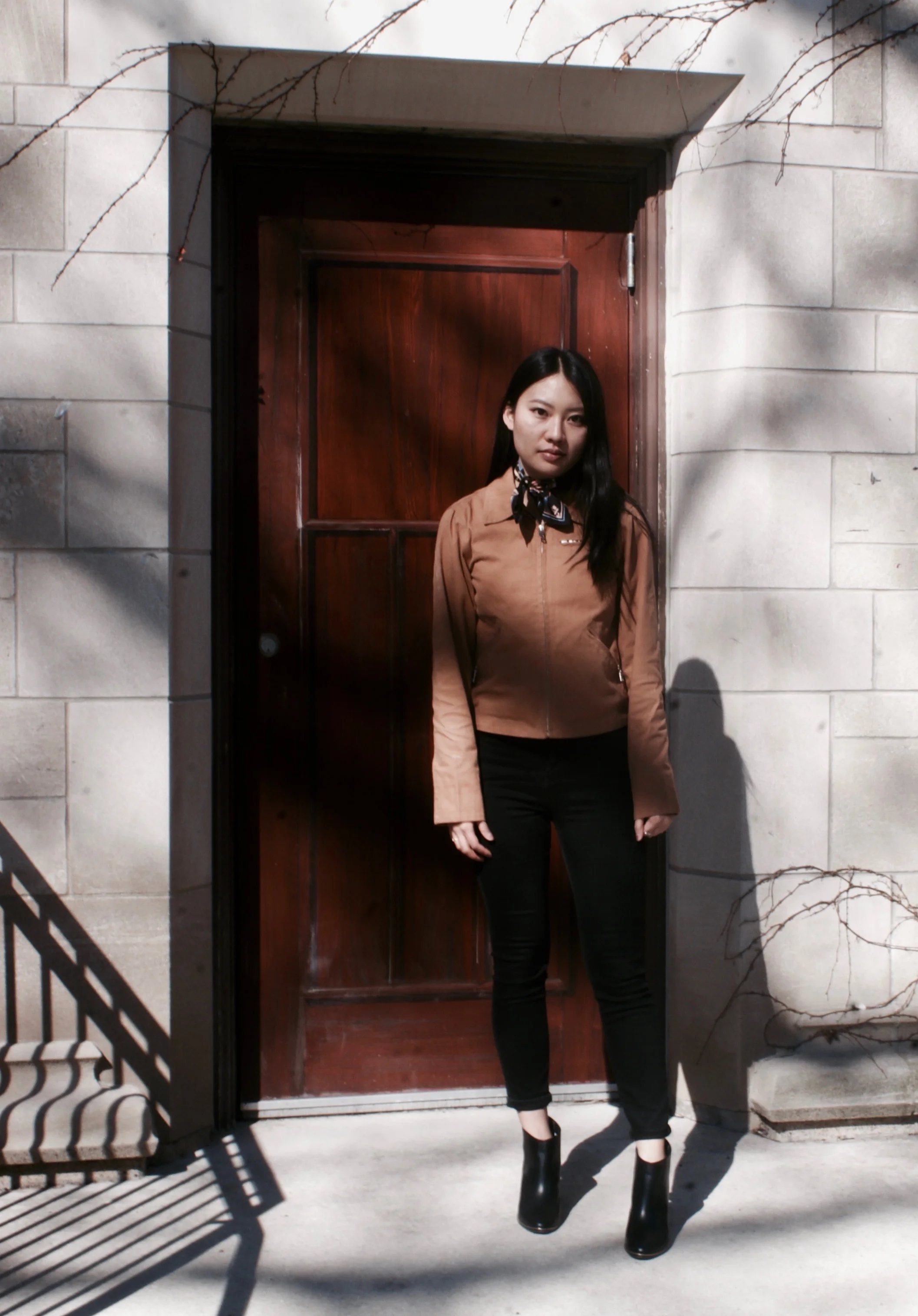 The collared jacket is from ASOS. I’ve had a long-term love for French worker’s jackets probably since 8th or 9th grade when I discovered Bill Cunningham and wanted a jacket like his. This past summer, I was at FYF Fest in LA and saw this girl wearing a collared jacket with her name embroidered on the back. I wanted to recreate that so I bought iron on patches from Michael’s and DIY-ed it before realizing I’d be too embarrassed most days to wear a jacket with my name on it. Jeans are also from ASOS.