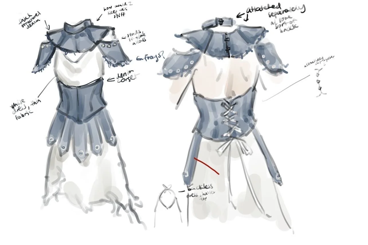Honestly, because last year was my first year designing ever, I was not very good at constructing garments. Initially, my designs last year were a lot more complex than they actually turned out to be because I HAD to simplify them in order to be able to make them. I was a beginner for sure, I literally could not make the clothes I had originally designed. I didn’t really know what I could and couldn’t do when it came to making my designs, so in the end, it was a lot more simplified. This year I feel like, having done it once already, I definitely know more about the process which makes it easier to cater my designs to my ability level. When I was making my designs, or even just brainstorming or scrolling through Pinterest, I’m more able to say “I can make this, but I can’t make this”— if that makes sense.