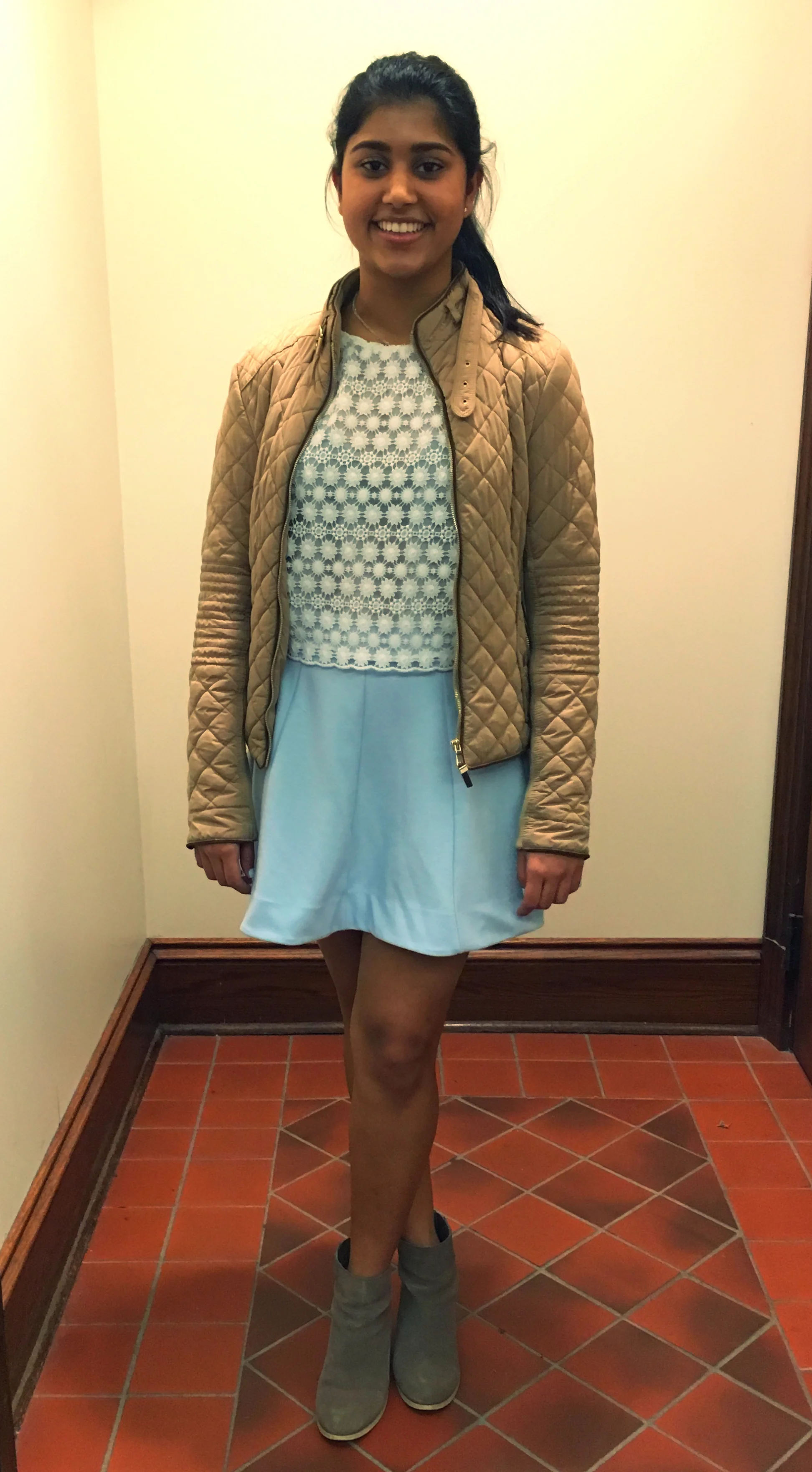 With the weather slowing inching up into the 80s, there's never been a better excuse to start pulling out all your spring clothes. First year Nikita Jain paired this easygoing, pastel blue circle skirt from Urban Outfitters with a delicate, white lace Topshop top for a simple yet sophisticated look for class.