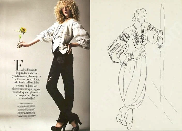 Yes, in fact it was Yves Saint Laurent, the world’s first famous designer, to officially introduce the Romanian IA into his fashion collection back in 1981 in Paris. Almost 50 years later after Henri Matisse finished his painting “La blouse Roumaine”, Yves Saint Laurent launched his autumn-winter haute couture collection. It was a homage to Matisse’s famous painting and as you can see below the resemblance is astonishing, yet you can easily spot the designer’s personal touch.