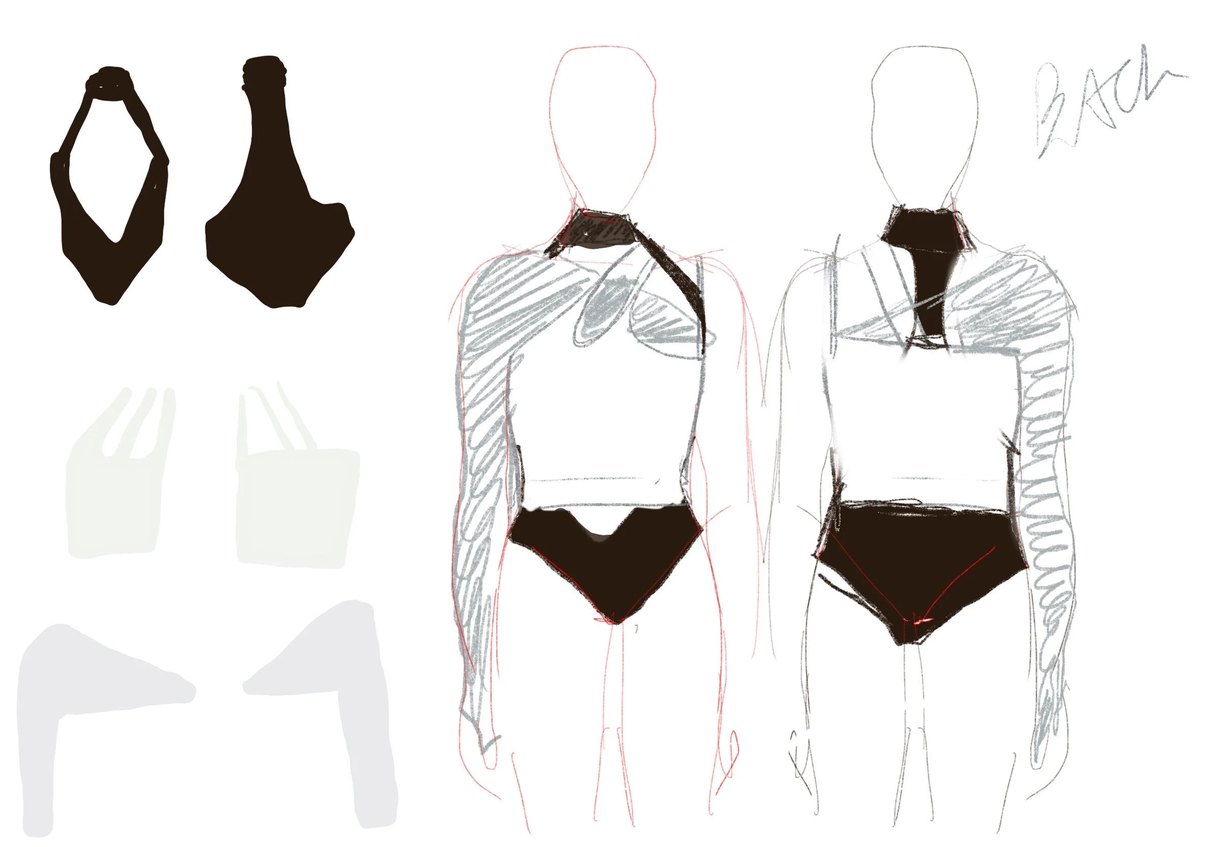 For the last look, to say the least, the design was completely changed. Amid making my first few pieces, I wanted to focus on an exaggerated form while paying a sort of homage to some of my favorite designers, namely Rei Kawakubo! It will be a little bit of a surprise…